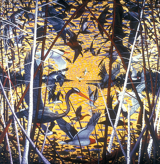All the King’s Men. Oil on canvas, 72″ x 72″Flight Paths. Oil on canvas, 70″ x 66″End of Eden. Oil on canvas, 70″ x 84″Hard Rain. Oil on canvas, 60″ x 48″Nest. Oil on canvas, 72″ x 72″Committee. Oil on canvas, 72″ x 72″After The Journey. Oil on canvas, 60″ x 48″Dusk. Oil on canvas, 72″ x 60″Lost. Oil on canvas, 72″ x 84″